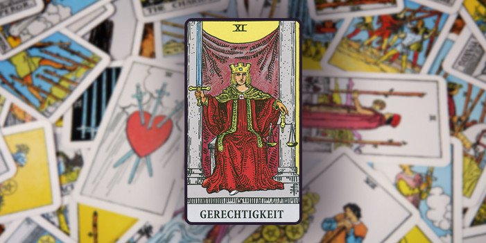 Taucht im Tarot die Gerechtigkeit auf, geht es um das Fällen bewusster Entscheidungen und das Übernehmen von Verantwortung für daraus resultierende Konsequenzen. Geistiges Wachstum ist nur möglich, wenn Sie sich Ihren Zweifeln und Ängsten stellen und die negativen Folgen eines Entschlusses akzeptieren.